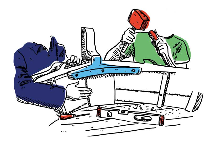 L’ensemble a été encadré par un carré fin pour signifier le monde de la construction et du bâtiment.